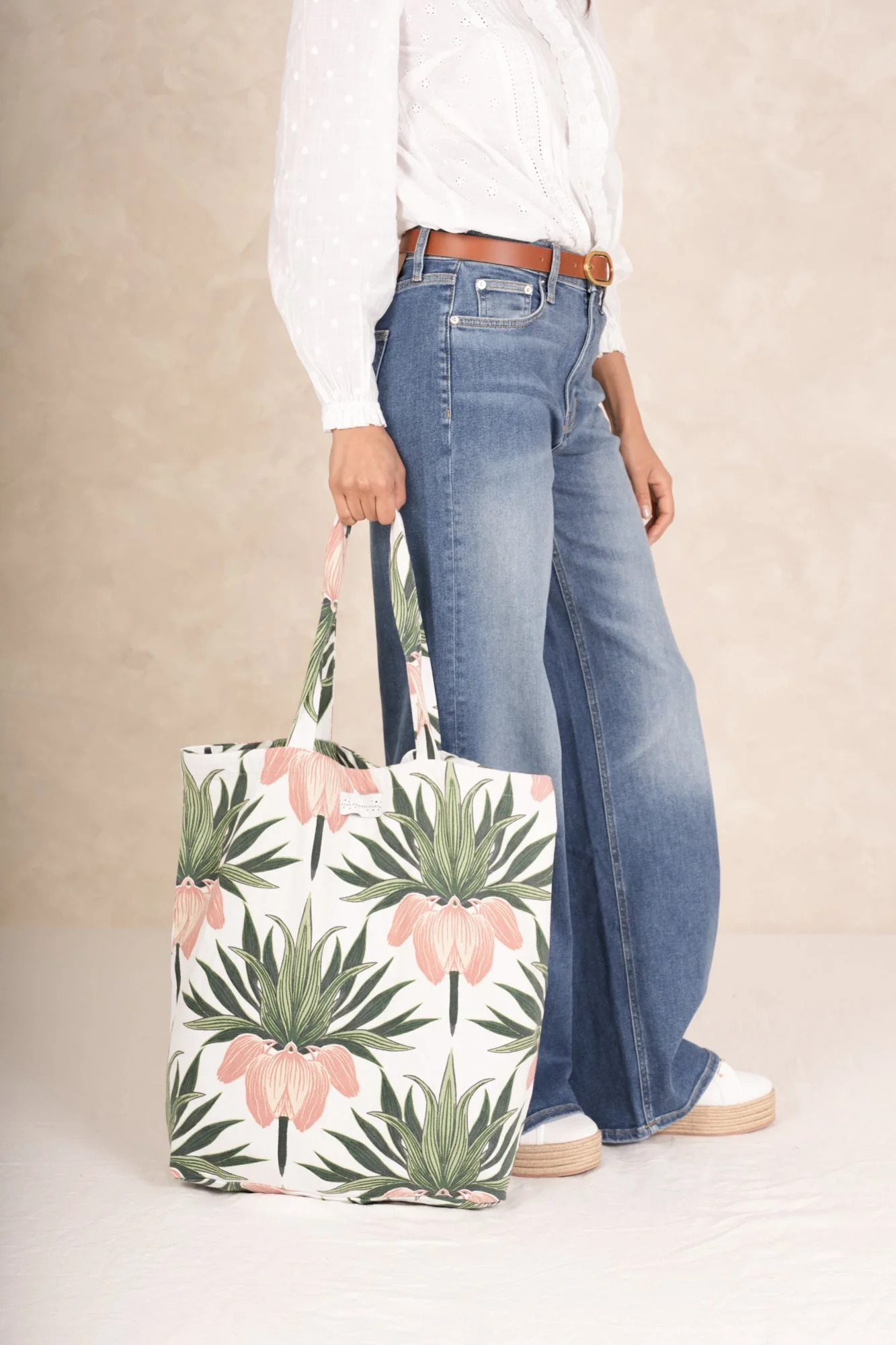 This 100% sustainable cotton bag, is just as versatile as it is beautiful. Whether it becomes your go to reusable shopping bag, a classic tote for keeping your books in or a chic beach bag, this print is sure to turn heads!
