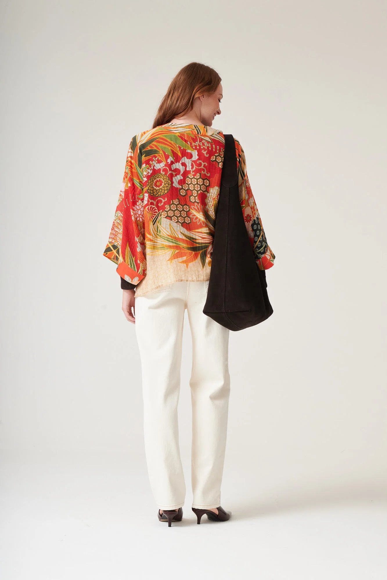 Our bestselling kimono jackets have loose ¾ length sleeves, an open front and a lightly embroidered lapel. Pair with a matching camisole and your favourite jeans in summer or layer over a polo neck during the cooler months.